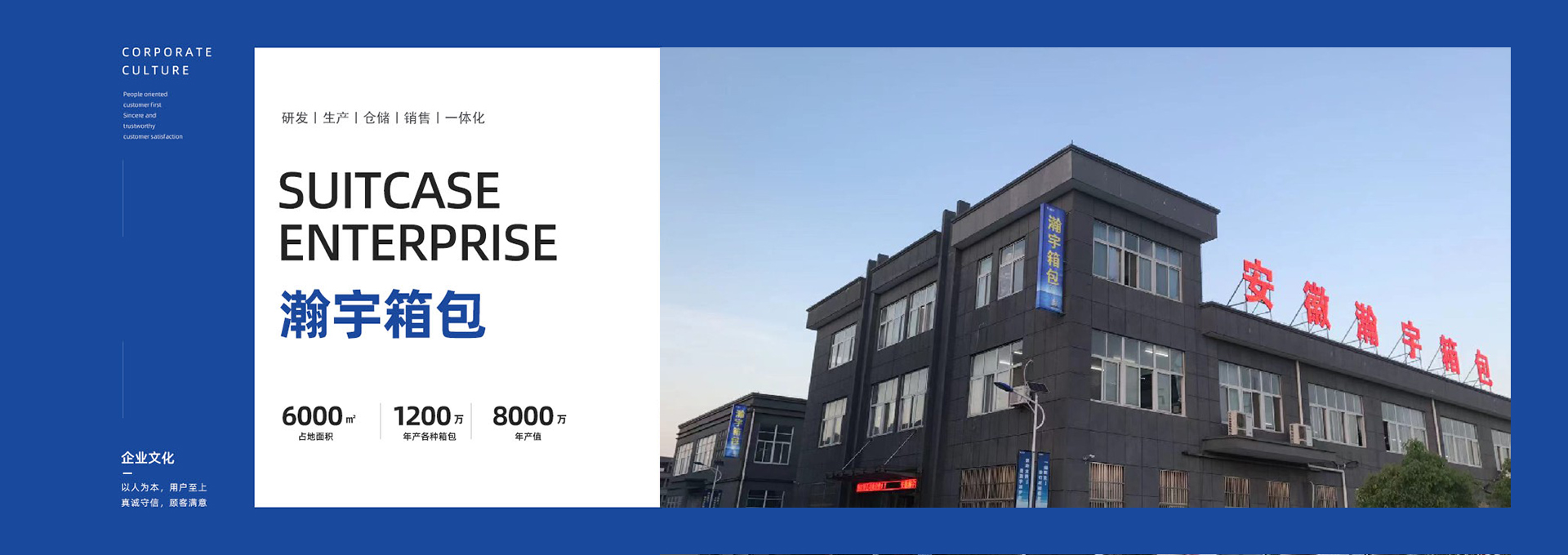 安徽瀚宇箱包有限公司一直致力于為客戶提供高品質(zhì)的旅行箱包,不斷探索創(chuàng)新,追求產(chǎn)品···